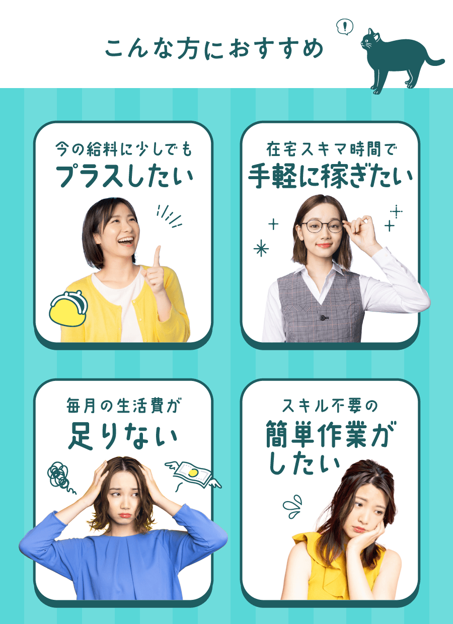 無料 | 他の参加者との交流ができる雑談グループへ無料でご招待(任意) 匿名で参加することができ、参加者目線での副業の「リアル」が覗けます。  |